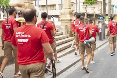 La charanga de LA VOZ DE ALMERÍA, animando las calles de Almería, con sus camiseta de MRW.
