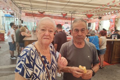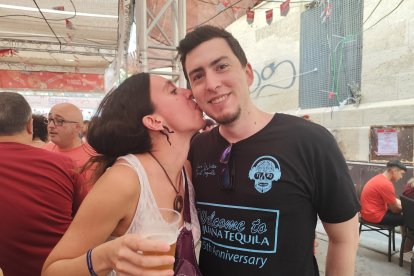 José y Dani, amigos de Almería, sonríen tras probar las tapas del ambigú.
