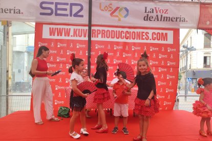 El escenario junto al Teatro Cervantes se ha vestido de lunares para el concurso de trajes de flamenco infantil y juvenil