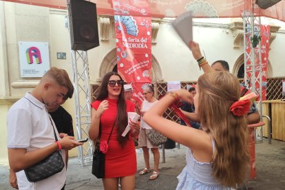 Daniela Rodríguez y Anna, de Brasil, en su primera feria de Almería.
