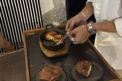 Jesús, del equipo de Alquímico, haciendo la demostración de uno de los emplatados en directo que hacen en el restaurante.