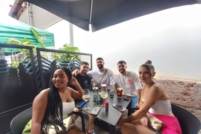 José Junco celebra se 24° cumpleaños con sus amigos en la terraza junto al Mercado Central.
