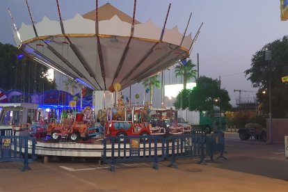 Imágenes de las atracciones paradas en el Recinto Ferial de Almería.