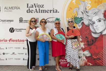 María Isabel, Juani, Carmen y Paloma, con sus flores al pelo y sus abanicos abiertos, en el 'photocall' de LA VOZ.