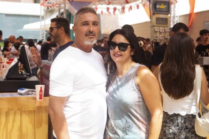 María Jesús y Pedro, disfrutando de su tinto de verano y su cerveza, en el ambigú Burana.