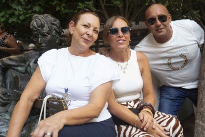Susana, Silvia y Miguel León, de Roquetas, sobreviviendo al calor en el ambigú Nuevo Torreluz.