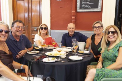 El presidente de la Agrupación de Cofradías, José Rafael Soto, y sus amigos en Cena & Soledad, disfrutando de una buena comida.