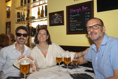 Luis, Eva y Antonio, con sus copas de cerveza en Entrefinos.