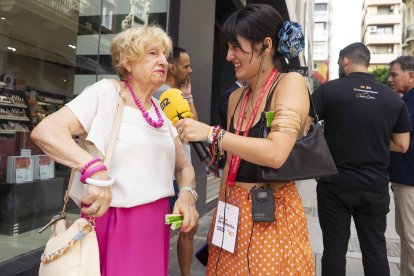 Rosa Rodríguez, de Extremadura, y María Rosa Puche, viviendo la Feria del Mediodía en el Nuevo Torreluz.