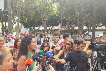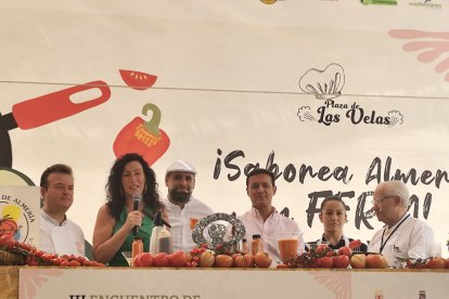 La concejal, Paola Laynez, en 'Alfaralmería', con miembros de la Asociación Asprodalba, Javier Peña, Down Almería y Aspapros.