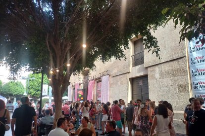 La cola de personas entusiasmadas por entrar al tardeo de feria en el Teatro Cervantes llena la calle