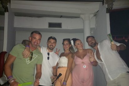 Raúl Acacio, Pedro Sánchez, Alba Martín, Serafín Collado y Susana Galán, un grupo de amigos que convirtió el palco del Cervantes en su propia pista de baile