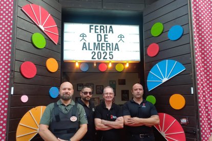 Antonio Álvarez, en su papel de portero, junto a Borja Pozo, Sergio Rodríguez y Carlos García, el equipo de seguridad garantizando que la diversión se viva con total tranquilidad en un ambiente único