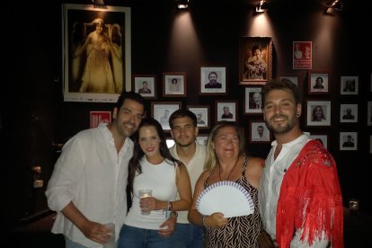 Nuria Mesas, Francisco Sánchez y una pareja de amigos disfrutando bajo la música y las luces del Teatro Cervantes