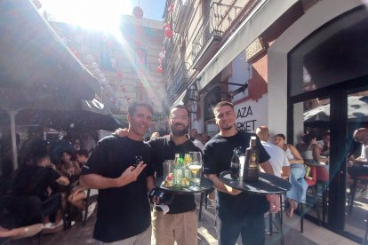 El equipo de Plaza Market, Gabriel, Paco y Pablo, este último famoso por sus chistes malos, contagiando a todos de carcajadas y demostrando que en el local no faltan ni el buen humor ni las ganas de Feria