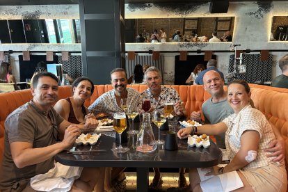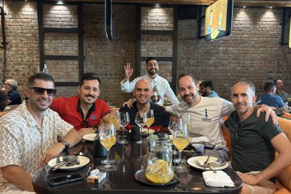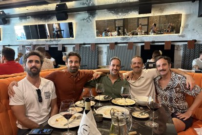 Nacho, Tito, Javi, Javi y Dani, amigos de Almería capital, pareja y amigos.