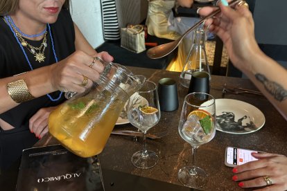 Raquel Garcés, Leticia Sanchez y Lidia Jiménez, amigas de Almería disfrutando de una de las sangrías de la casa.