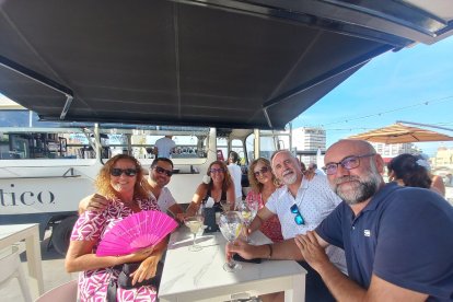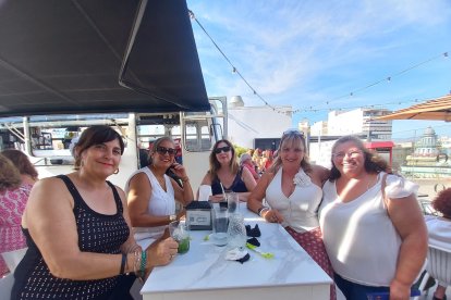 Las amigas Gracia Salmerón, Mimi, Sandra González y Lourdes Guirado compartieron mesa, brindis y confidencias mientras el atardecer iba tiñendo de dorado la Alcazaba