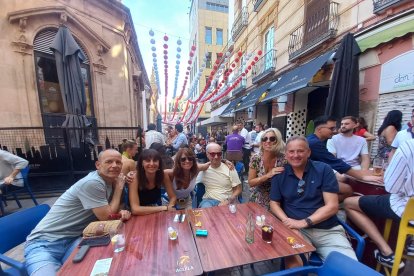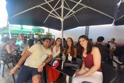 Daniel Amorós, Raquel Sánchez, Mar López y Catalina Acuyo compartieron charlas animadas mientras el ambiente festivo de la plaza crecía a su alrededor