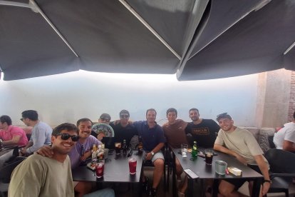 Nacho Moyano, David Egea, David Sánchez, Juan Pedro Martínez y Juanjo Martínez hicieron piña en su mesa, convirtiéndola en una fiesta improvisada