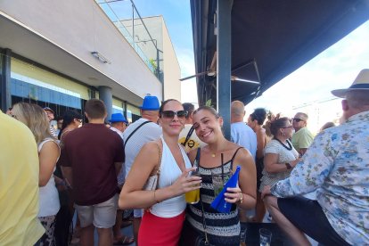 Las amigas Paula Montoya y Milena Pulido se buscaron un rincón con aire fresco, brindando por lo bien que sienta la feria desde las alturas de El Terrao