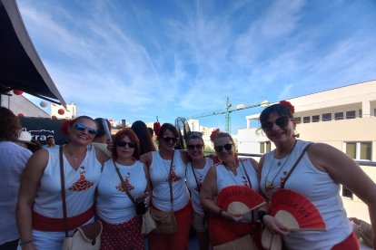 María José Maldonado, Carmen López, Ana Cruz, Amalia Castro y Cristina Pérez Ruano hicieron piña, dándole colorido a la tarde con su alegría contagiosa y sus graciosos abanicos de feria con la frase "que corra el aire"