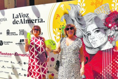 Encarna Montoya y Fede, amigas desde que nacieron, con sus abanicos de ‘Look & Find’, listas para la Feria.