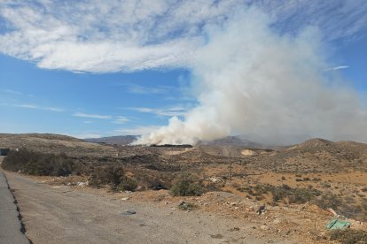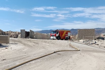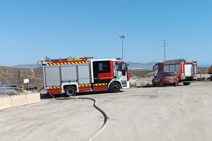 Sin embargo, apenas diez minutos después de la primera observación, las sospechas se confirmaron: entre los montones de rastrojos y restos vegetales han comenzado a surgir llamas que rápidamente fueron extendiéndose, coloreando de el cielo de un gris ceniciento. Ante esta situación, el vigilante no ha dudado en dar aviso inmediato a los Bomberos de Almería, que han acudido al lugar con tres camiones nodriza y un vehículo de apoyo. Desde varios kilómetros a la redonda era visible la gran columna de humo gris que se elevaba desde la planta, un signo inequívoco de la magnitud del incendio.