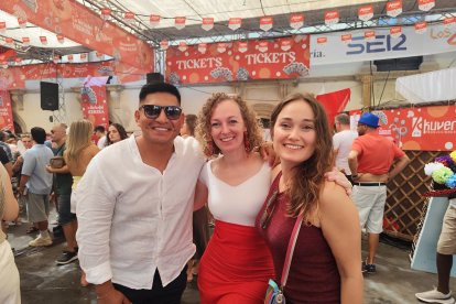 Gema, Pilar y Javier, tres amigos de Almería capital que han ido al ambigú a pasárselo bien.