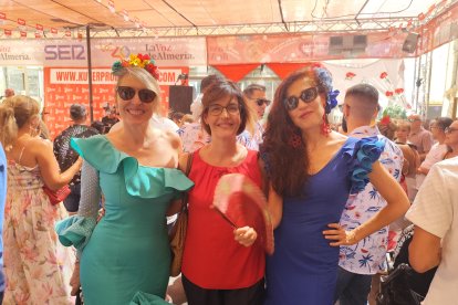 Rosa Lara, Claudia Rueda y Eva Domínguez, todas de Almería, posan con sus mejores galas.