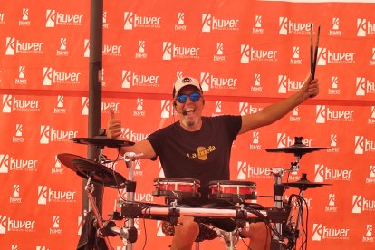 El batería de La Huella posa para LA VOZ entre canción y canción.