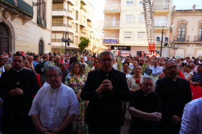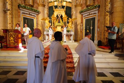 El cabildo catedralicio, presente en la ofrenda floral a la Virgen del Mar.