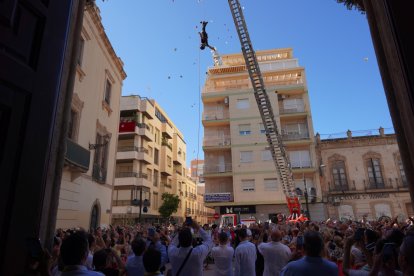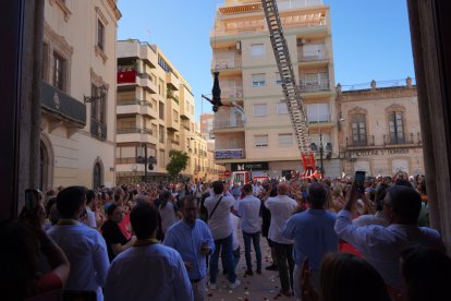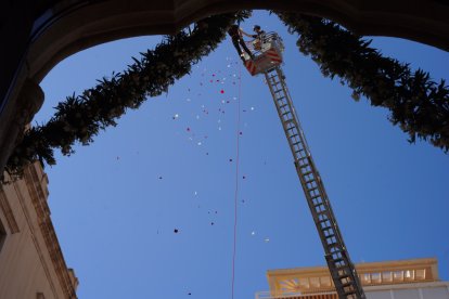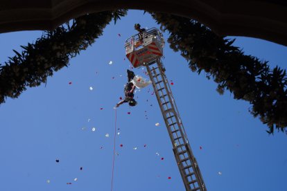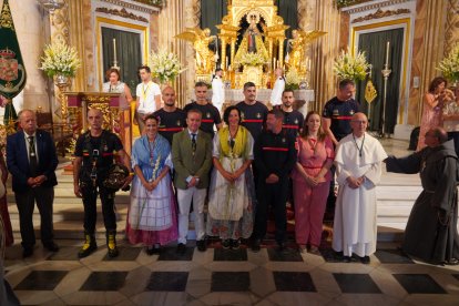 Tradicional llegada de los Bomberos con un ramo para la Virgen del Mar.