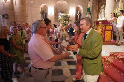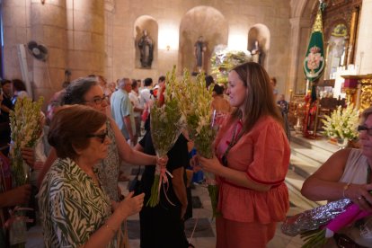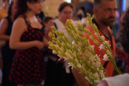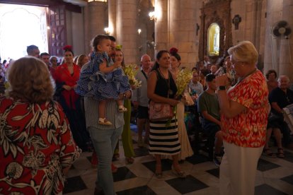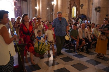 Largas colas para llevarle nardos a la Virgen del Mar.