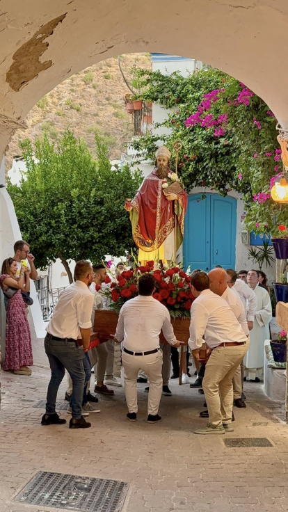 El municipio de Mojácar vive las últimas horas de unas intensas Fiestas en honor a San Agustín. Atrás quedan ya eventos tan coloridos y espectaculares como la tradicional 'Subida del agua' y ofrenda floral, con cientos de asistentes, muchas de ellas ataviadas de mojaqueras, así como la procesión en honor a San Agustín, entre otros actos como la elección de reina o el pregón, que este año ha corrido a cargo del popular escritor Jorge Díaz.