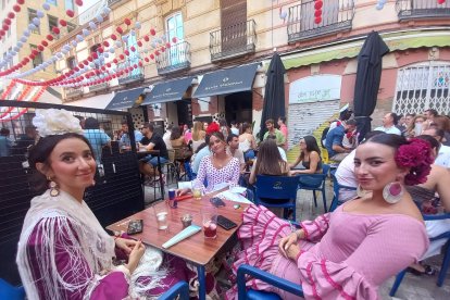 David Giménez, Juan Oliver, Joaquín Porlán y Lázaro Giménez, este último vestido de flamenca para la ocasión, fueron de los que más se dejaron ver, charlando animadamente y disfrutando del ambiente único de la terraza