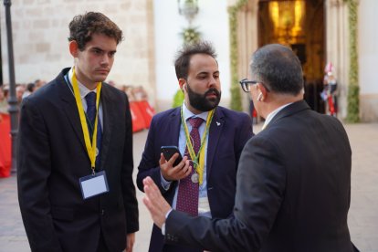 El pregonero de la Virgen del Mar, Alfredo Casas, junto al presidente de la Agrupación de Hermandades y Cofradías, José Rafael Soto; el hermano mayor de la Virgen del Mar, Jorge Juan Fernández Compán; y la camarera mayor, María José Gutiérrez Polo