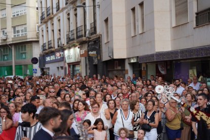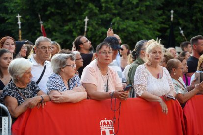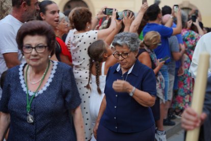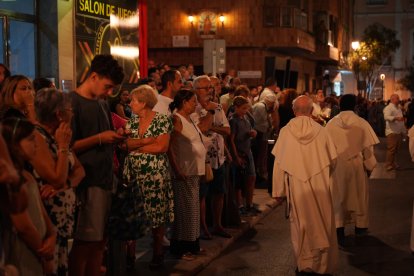 Caída la noche, la gente seguía aguardando el paso de la patrona