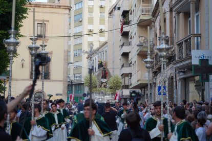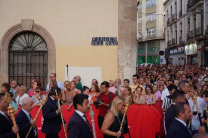 Salida del extenso cortejo de la procesión de la Virgen del Mar