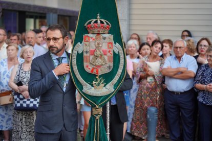 Francisco Balcázar, con el estandarte corporativo de la Hermandad de la Virgen del Mar