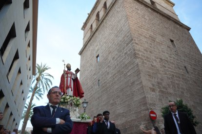 San Indalecio, patrón de Almería, a su paso por la Puerta de los Perdones