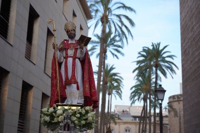 San Indalecio, patrón de Almería, frente a la Puerta de los Perdones
