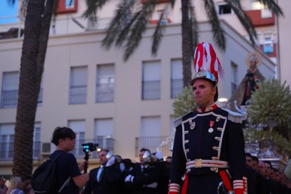 La Virgen del Mar ha iniciado su recorrido por las calles del centro desde su templo. Tras la salida, en torno a las 20.00 horas, la patrona ha ido acompañada, además de por San Indalecio, por la Banda de Guerra de la Brigada de Infantería Ligera Rey Alfonso XIII de La Legión, con base en Viator, por la Banda Municipal de Música de Almería y por la Banda de Música Santa Cecilia de Sorbas.