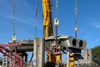 A falta de los pilares, la estructura principal del puente ya ha sido retirada por los operarios