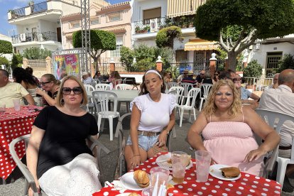 María Pérez, Natalia Pérez y Ana Beltrán cogiendo fuerzas en la Feria del Mediodía.