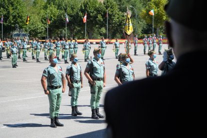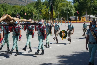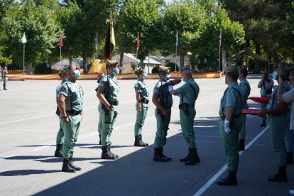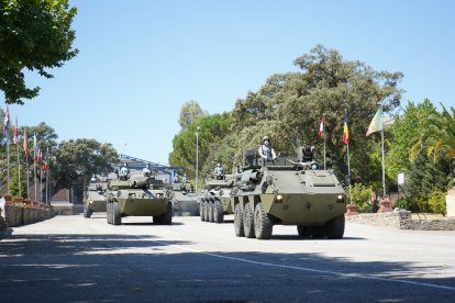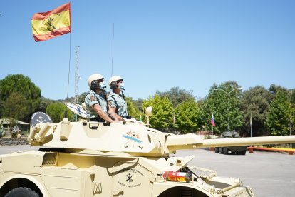 El Grupo de Caballería Reyes Católicos celebra el día de su patrón, Santiago Apóstol. El general Melchor Marín Elvira presidió el acto solemne, acompañado por el coronel José De Meer y por el teniente coronel Luis Santamaría. Condecoraciones y desfile de los componentes de la unidad.