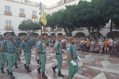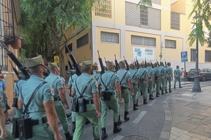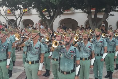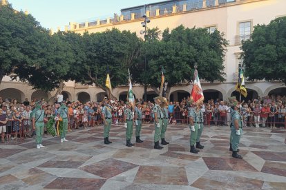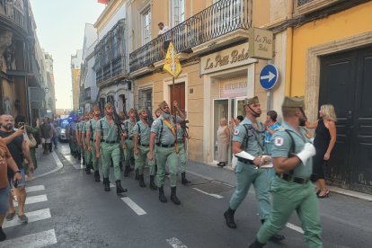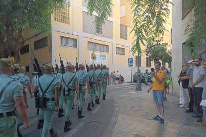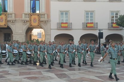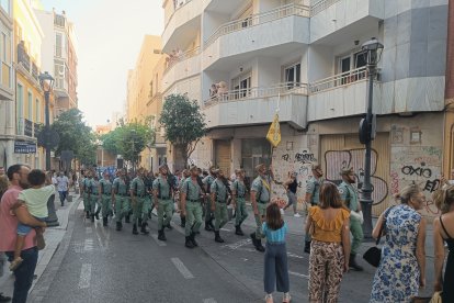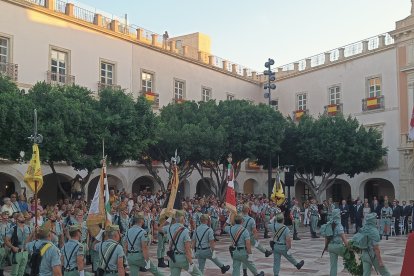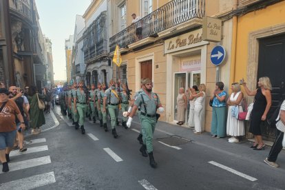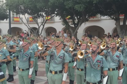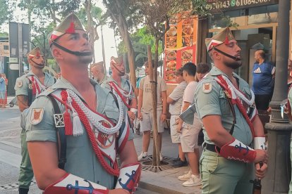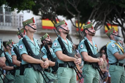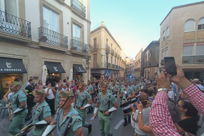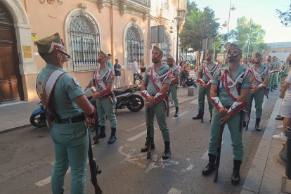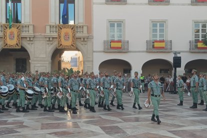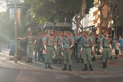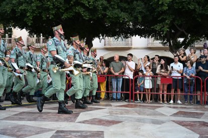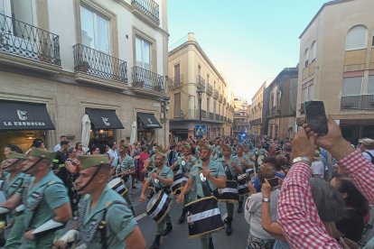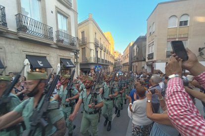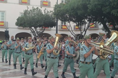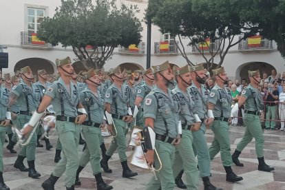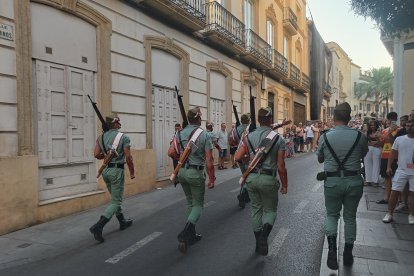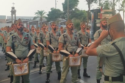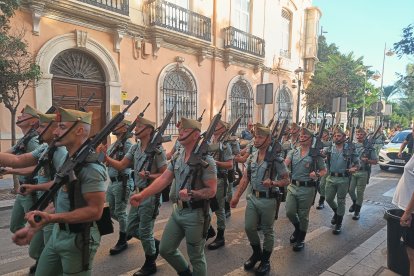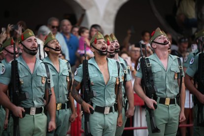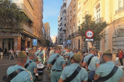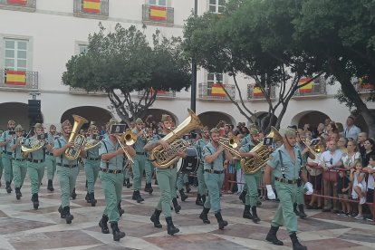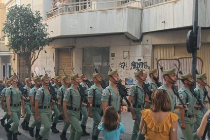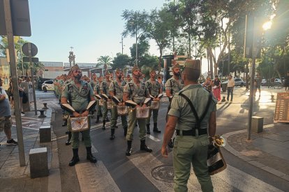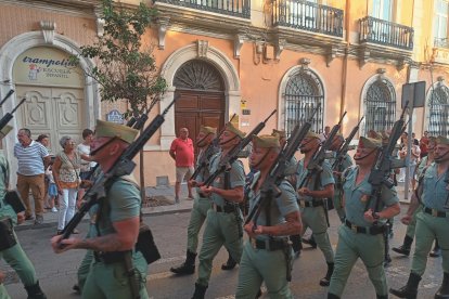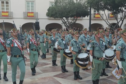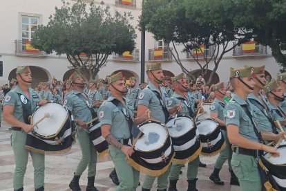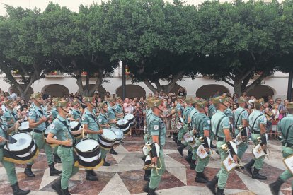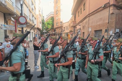 Trompetas y tambores abrieron este viernes 19 el paso al piquete de legionarios de la Brigada “Rey Alfonso XIII”, II de La Legión, que desfiló por la calle Real hasta la Plaza de la Constitución. Al frente marchó una escuadra de gastadores de la VIII Bandera “Colón”, que arrancó aplausos con sus malabares de subfusiles.