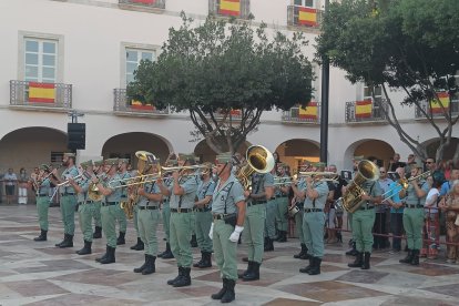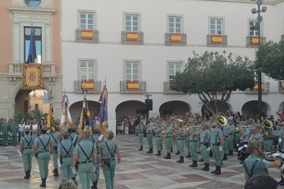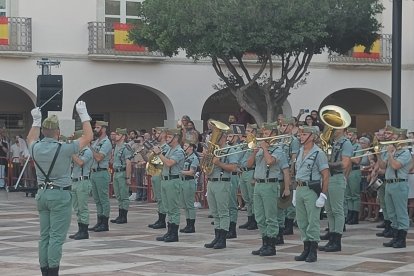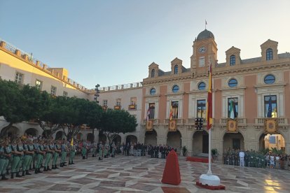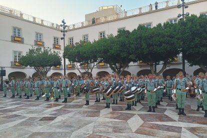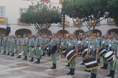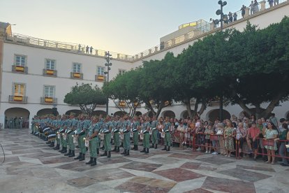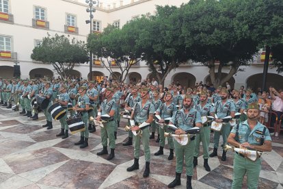 La entrega del Escudo de Oro coincide, además, con una efeméride de gran relevancia para la unidad: el 105.º aniversario de la creación de La Legión. Pasadas las 19:00 horas, centenares de almerienses abarrotaban la Plaza de la Constitución, aguardando el paso del desfile. La emoción se desató cuando el piquete de la Brigada “Rey Alfonso XIII”, acompañado por la Banda de Guerra, hizo su entrada: el público rompió a aplaudir, contagiado por el ritmo marcial y la precisión de los legionarios. Toda la fuerza desplegada en la plaza se presentaba ante el General de Brigada Agustín Carreras, jefe de los legionarios de Almería, y el General de División Luis Francisco Cepeda, quien presidió el acto.