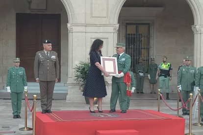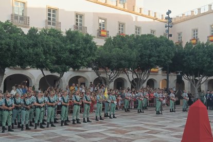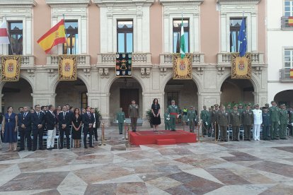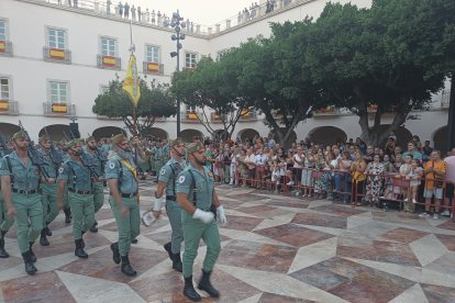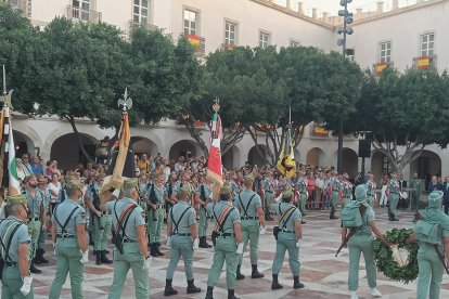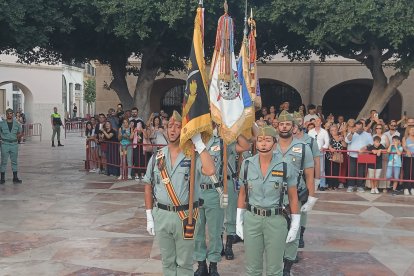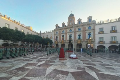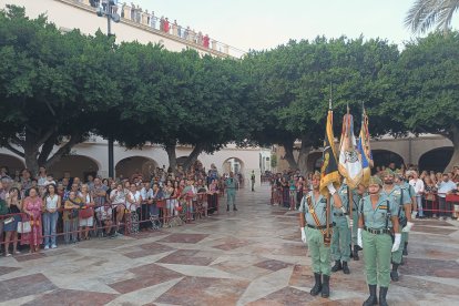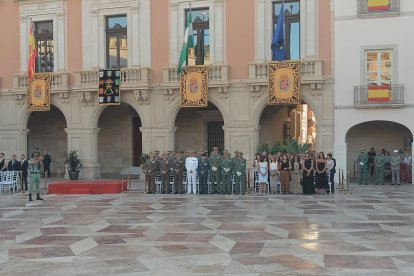En un acto sencillo, cercano y emotivo celebrado en la Plaza de la Constitución ante la presencia de centenares de vecinos y visitantes, la alcaldesa, María del Mar Vázquez, ha entregado el Escudo de Oro de la Ciudad de Almería a La Legión.