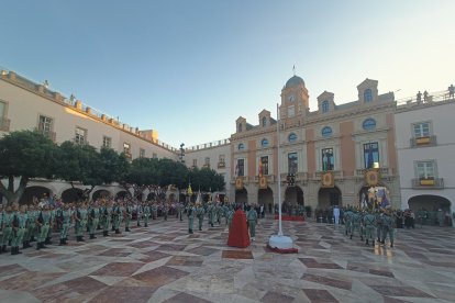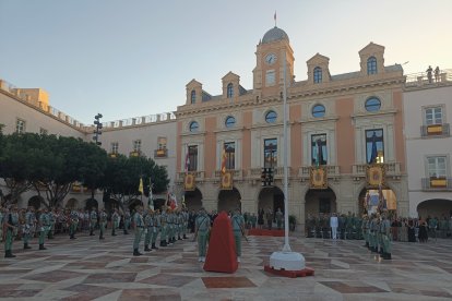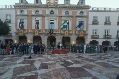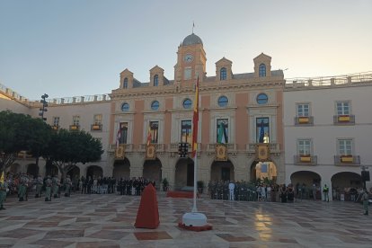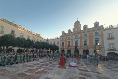 Los honores funerarios concluyeron con una salva de fusilería, resonando sobre los adoquines de la plaza. Tras cantar la Canción del Legionario, la fuerza se retiró del simulado patio de armas, dando paso a la entrega del Escudo de Oro de la Ciudad, broche final de una ceremonia cargada de historia, respeto y orgullo compartido.